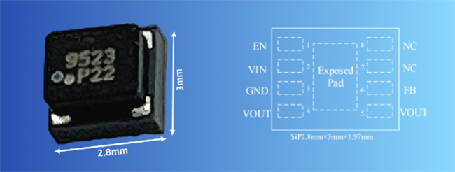 高功率密度:最高轉(zhuǎn)換效率93%,SiP2.8mm×3mm×1.97mm封裝實現(xiàn)12.5W輸出功率;