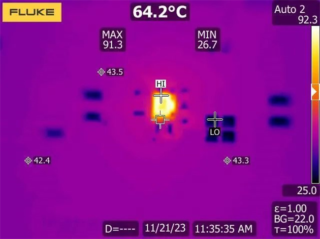 測試結(jié)果:模塊表面最高溫度記錄為殼溫