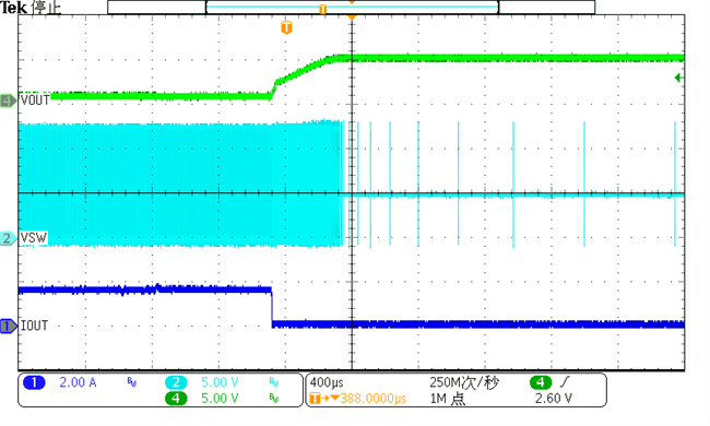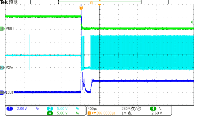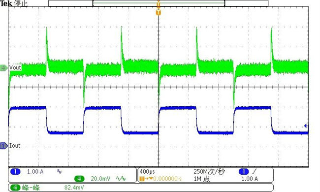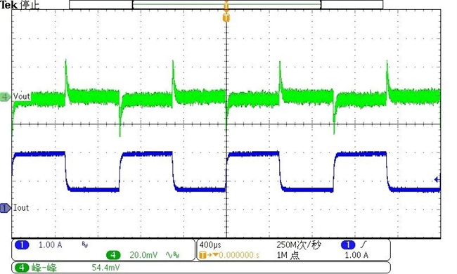 測試結(jié)果:動態(tài)響應(yīng)VPP =54.4mV, 82.4mV