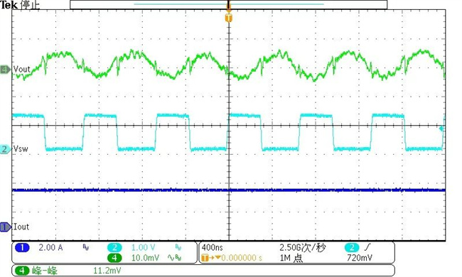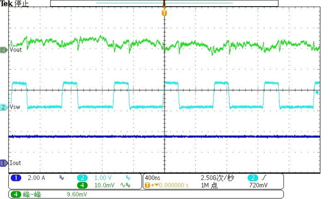 測試結(jié)果:紋波VPP =9.6mV, 11.2mV