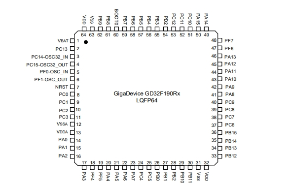 3、多種通信接口:GD32F190R8T6提供了多種通信接口,包括多個USART、SPI和I2C接口。這些接口可用于連接外部設備,實現與其他器件的數據交換和通信。