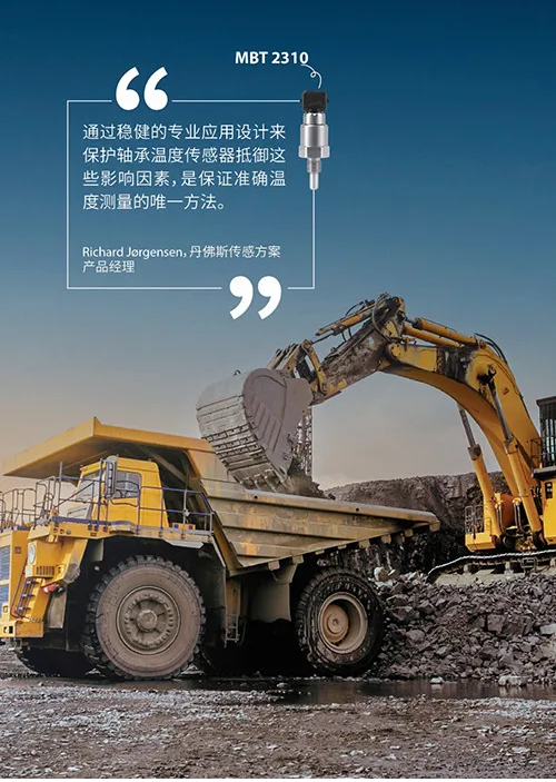 Richard J?rgensen解釋說:“動力傳動系統(tǒng)上的軸承不得不承受劇烈的振動,以及諸如泥土、覆蓋物、濕氣、雨水等等自然因素的影響。”這就是為什么要通過穩(wěn)健的專業(yè)應用設計來保護軸承溫度傳感器抵御這些影響因素,是保證準確溫度測量的唯一方法。