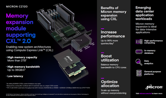 美光科技發布CZ120內存擴展模塊 加速CXL2.0推廣