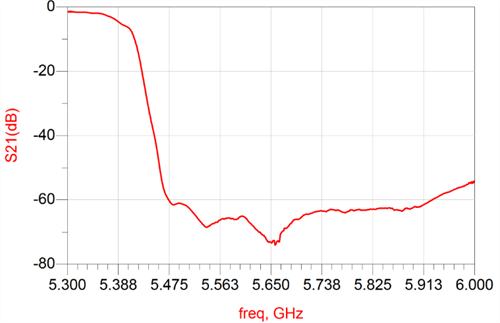 SPT5250對UNII2c-3 頻段(5490 MHz~5835 MHz)的抑制