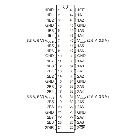 四、SN74ALVC164245DGGR的引腳圖